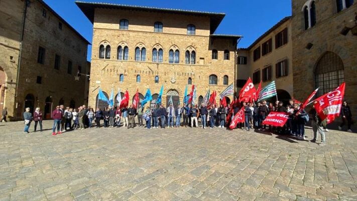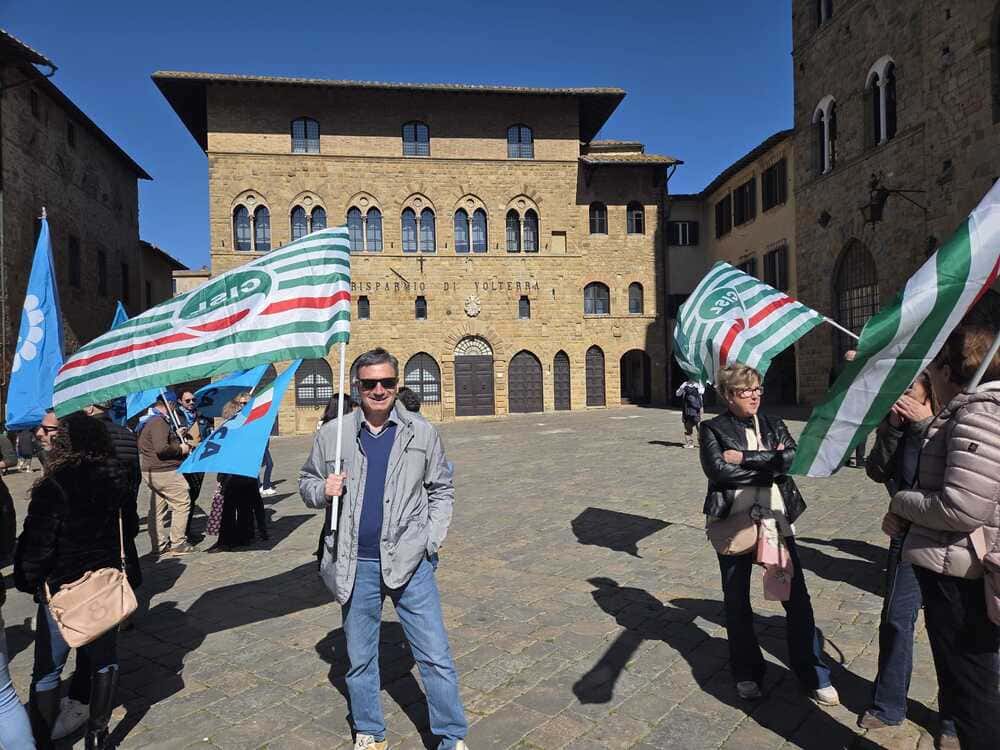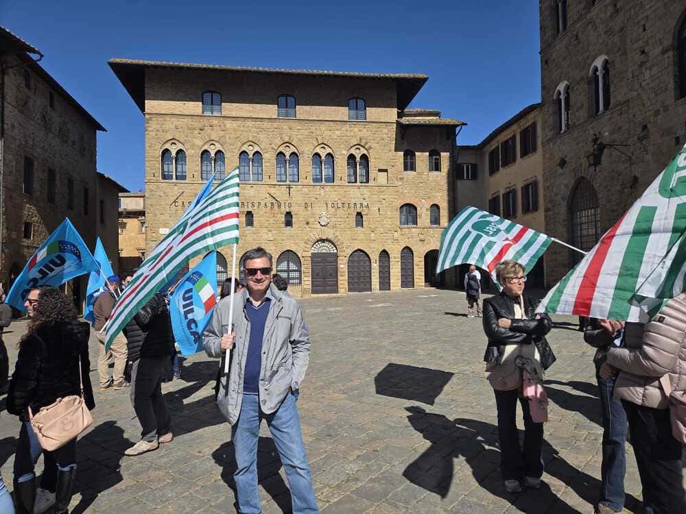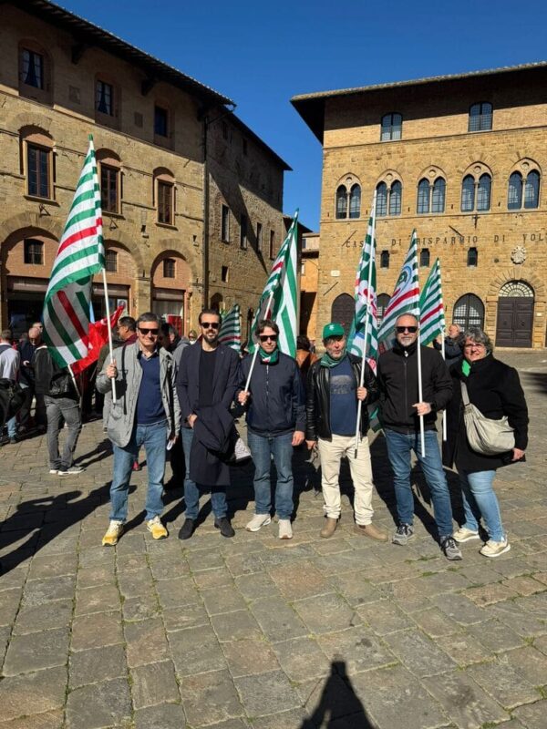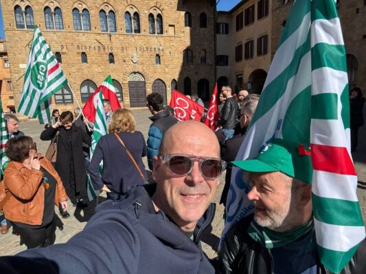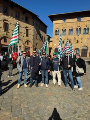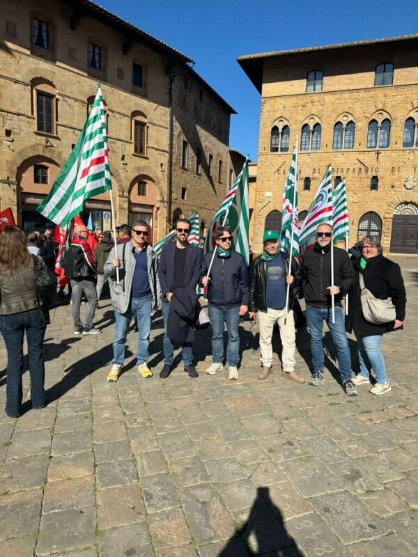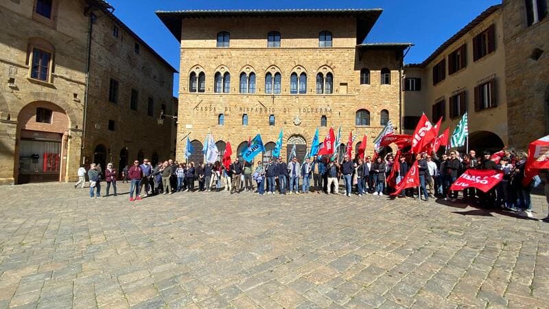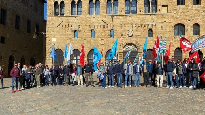 Al presidio in Piazza dei Priori a Volterra, in provincia di Pisa, davanti alla sede centrale, insieme ai lavoratori, Rsa e Segreteria regionale, erano presenti anche Claudio Stroppa, responsabile C.A.First, Fabio Brunamonti, coordinatore nazionale First Cisl, Marco Chirici, Segretario responsabile First Cisl CR Volterra, e Marco Lenzini, Segretario generale First Cisl Toscana.