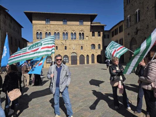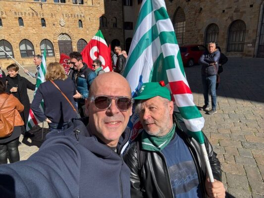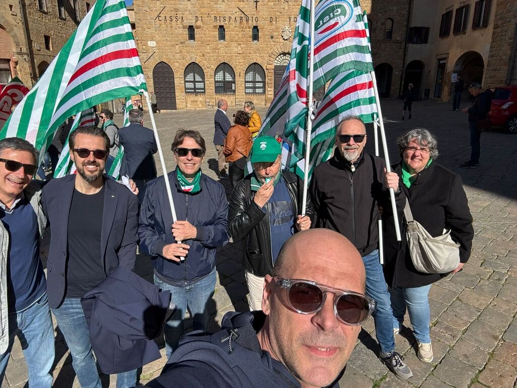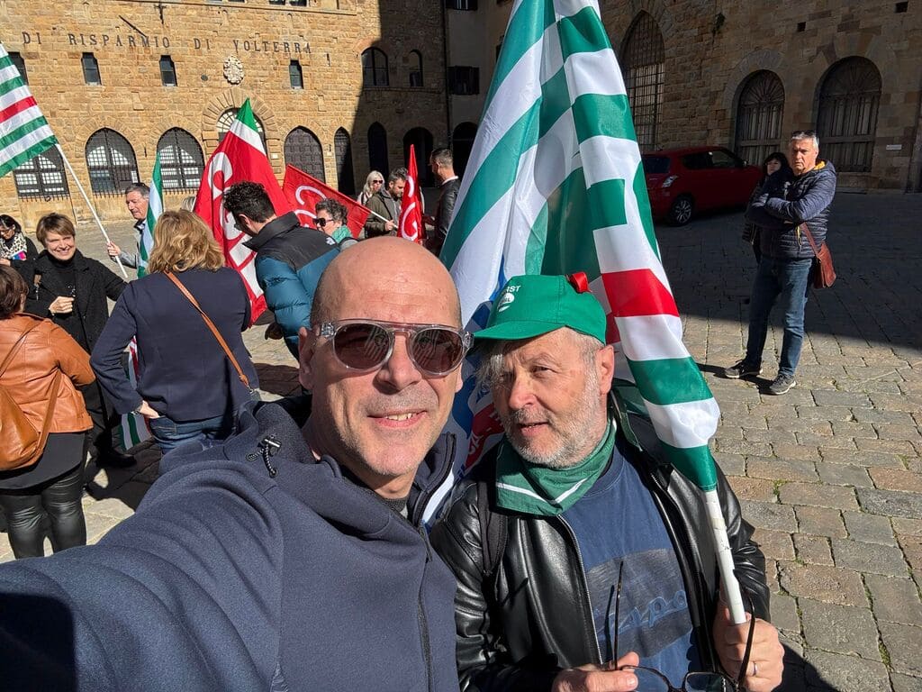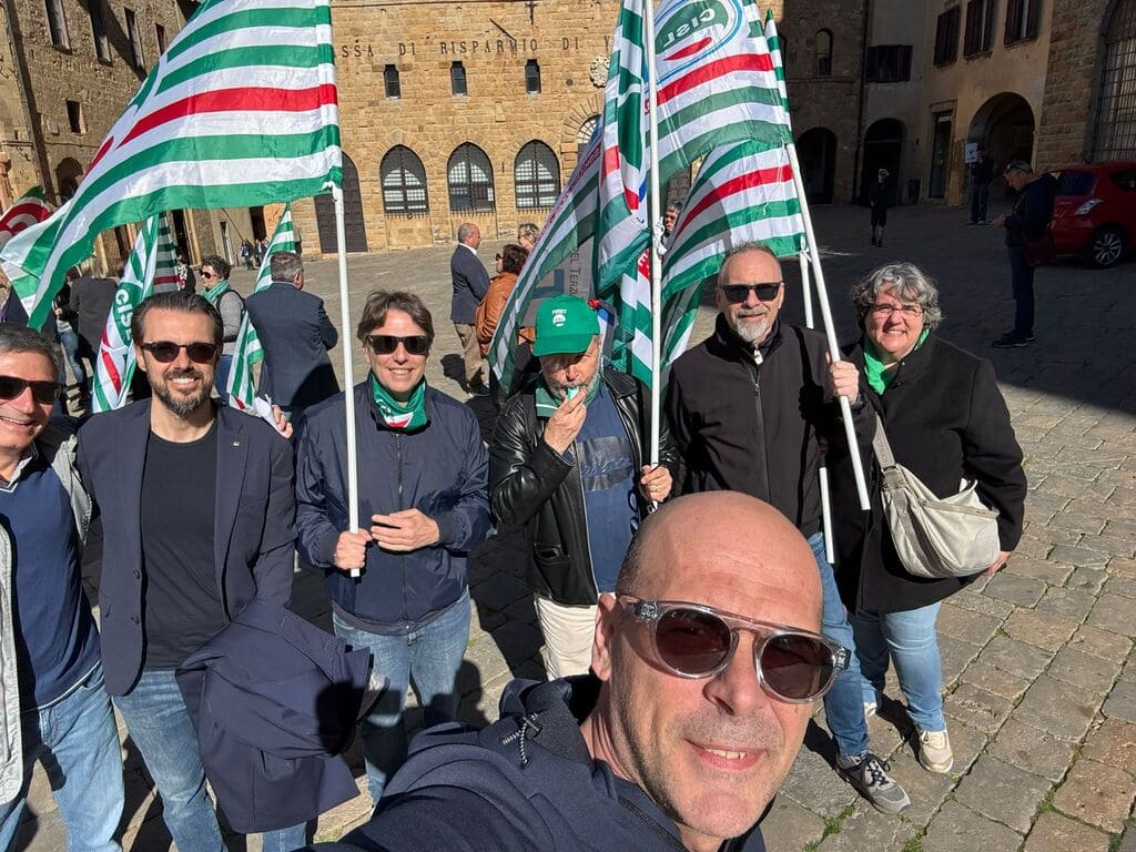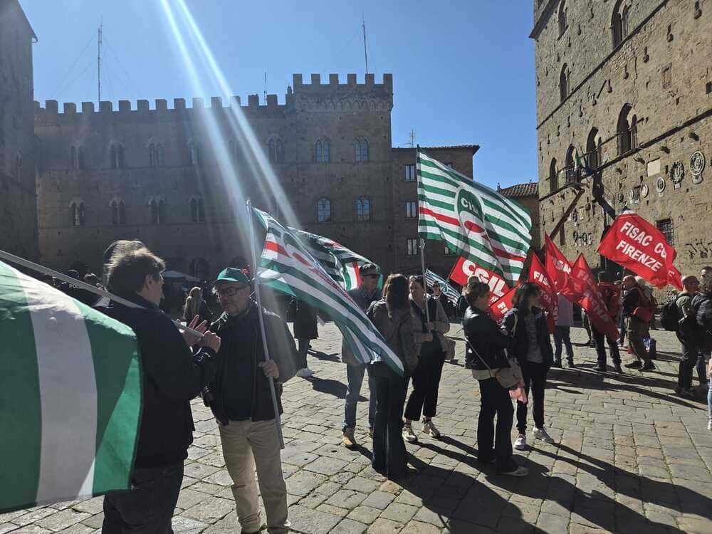 Al presidio in Piazza dei Priori a Volterra, in provincia di Pisa, davanti alla sede centrale, insieme ai lavoratori, Rsa e Segreteria regionale, erano presenti anche Claudio Stroppa, responsabile C.A.First, Fabio Brunamonti, coordinatore nazionale First Cisl, Marco Chirici, Segretario responsabile First Cisl CR Volterra, e Marco Lenzini, Segretario generale First Cisl Toscana.