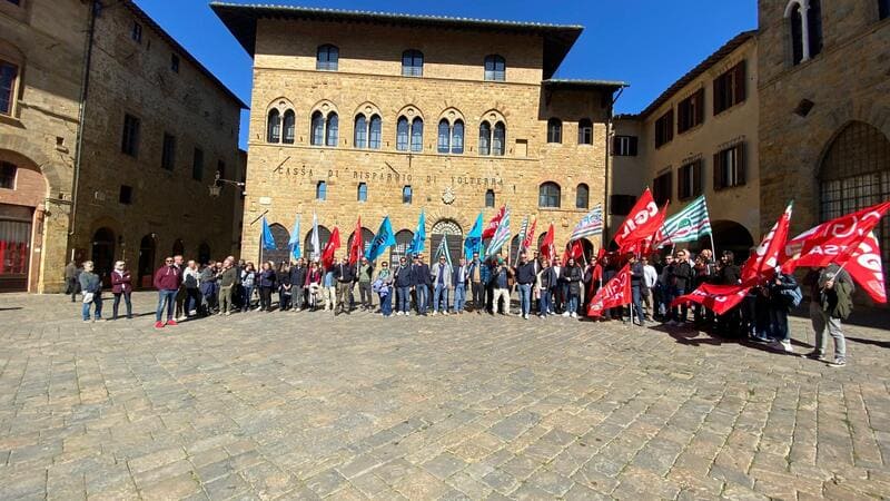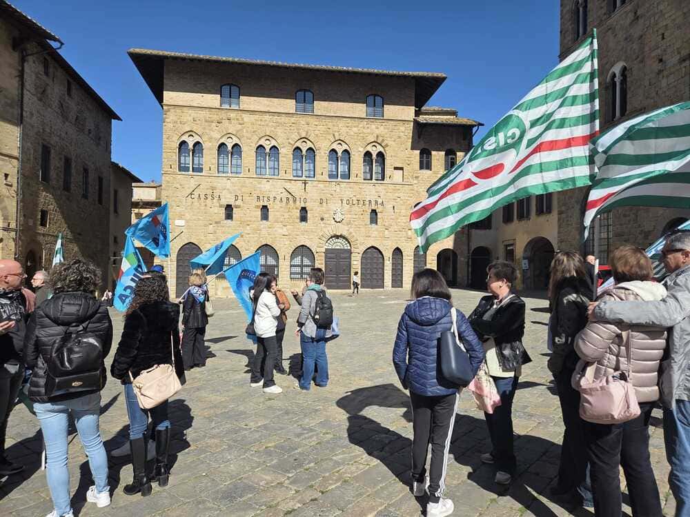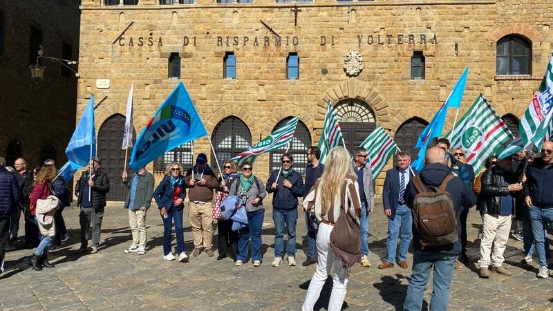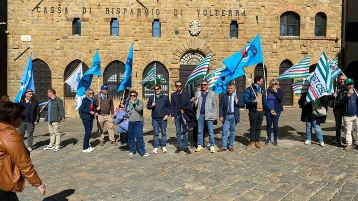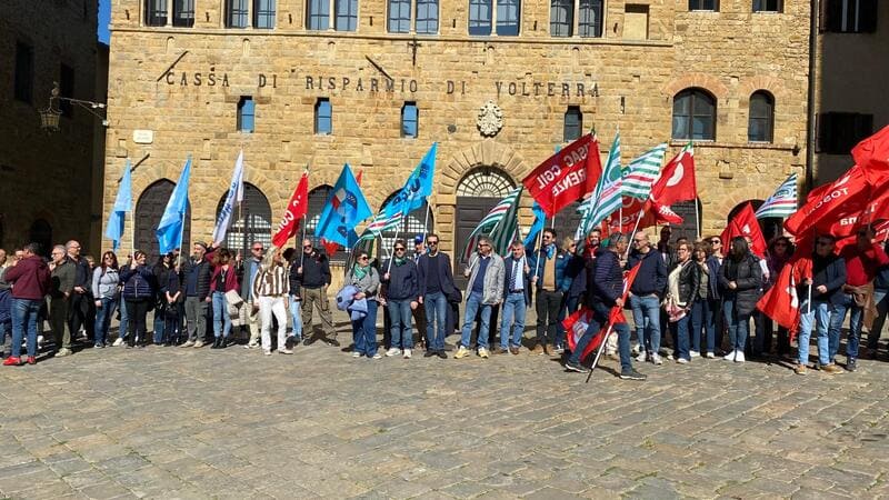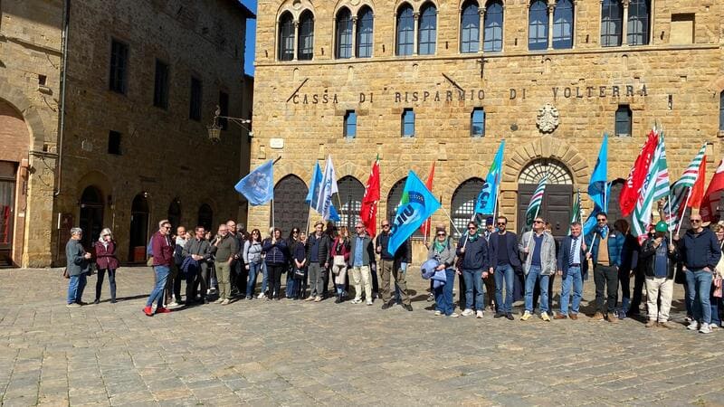 VOLTERRA – Martedì 7 aprile 2026 si è svolto lo sciopero indetto dalle Organizzazioni Sindacali di Cassa di risparmio di Volterra. L’istituto occupa 410 lavoratori nelle 62 filiali e 2 sedi operative in Toscana.